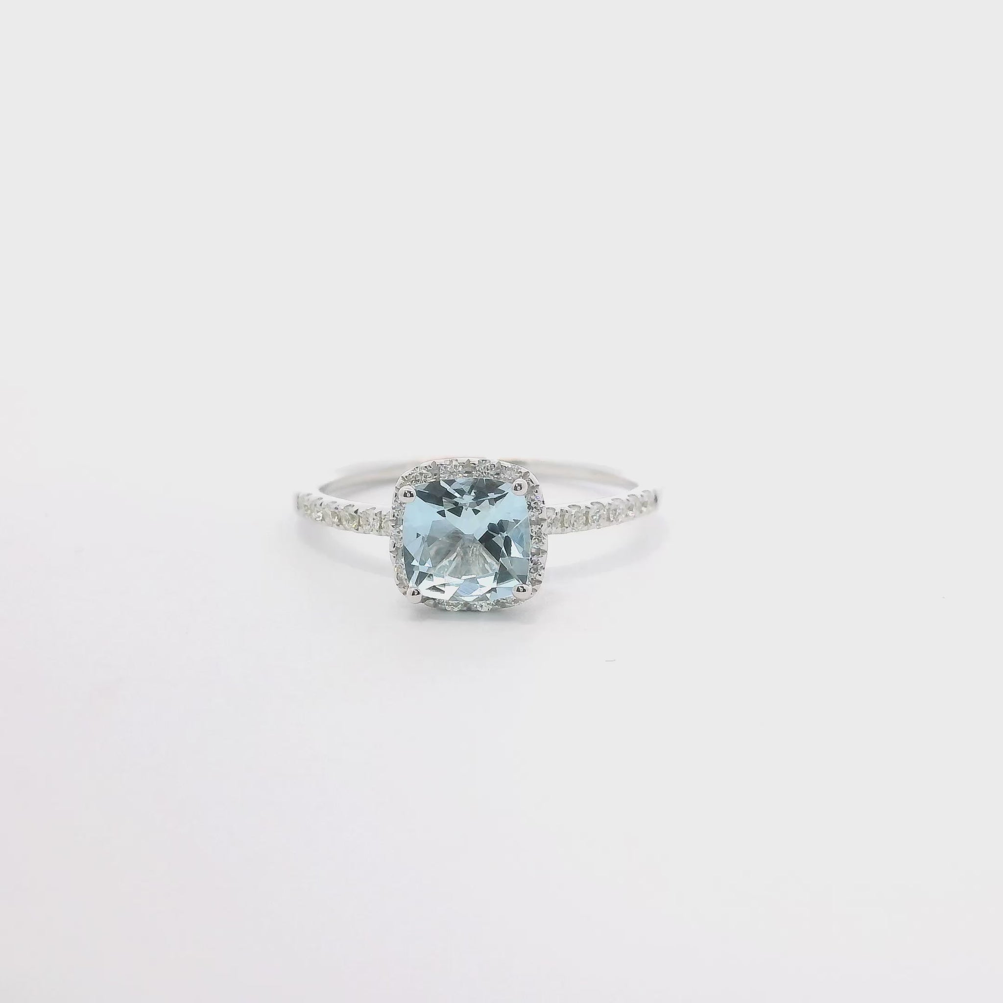 WHITE GOLD AQUAMARINE AND DIAMOND HALO RING 200-04185
