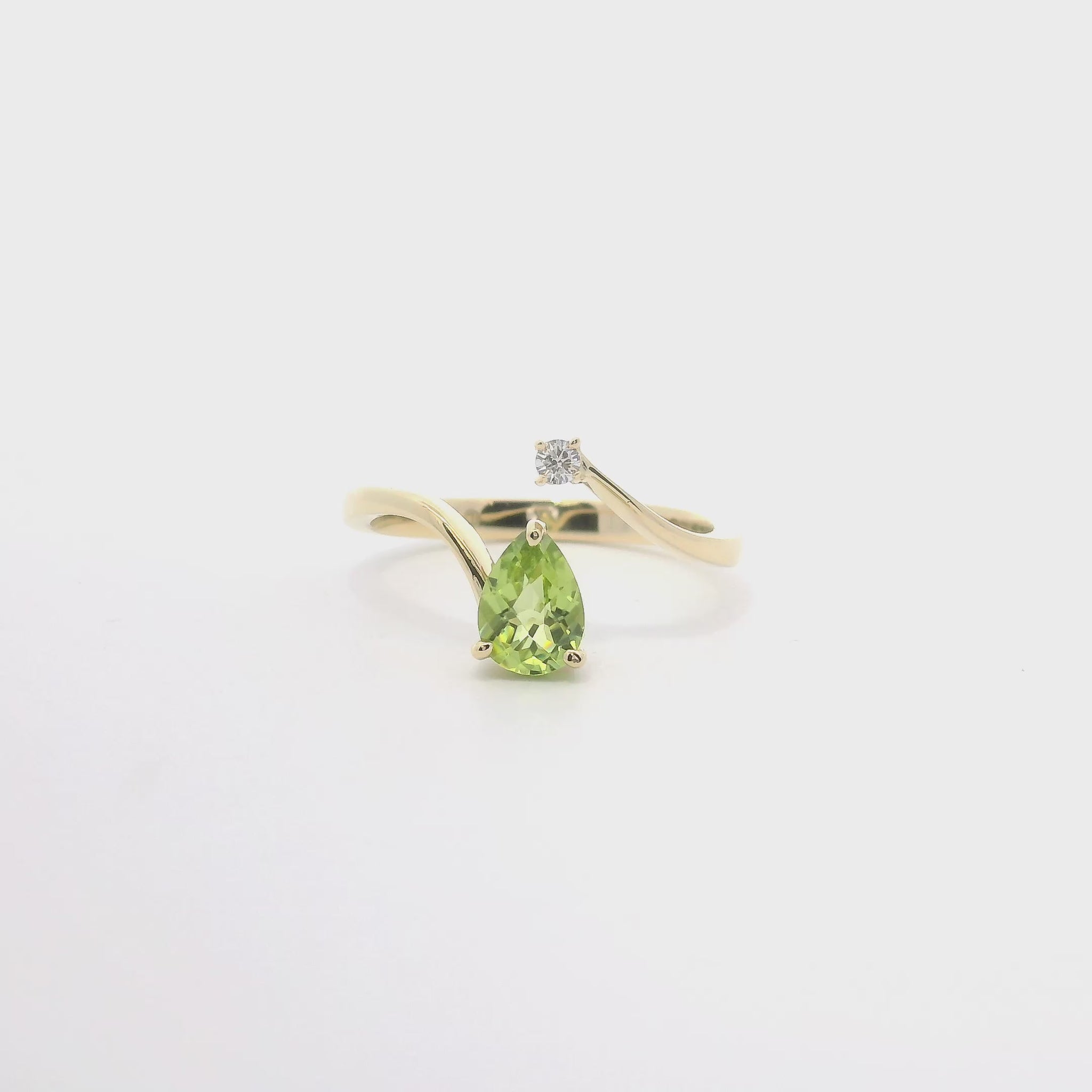 14KT YELLOW GOLD .82CT PEAR SHAPED PERIDOT AND .05CT SI1 H NATURAL DIAMOND RING