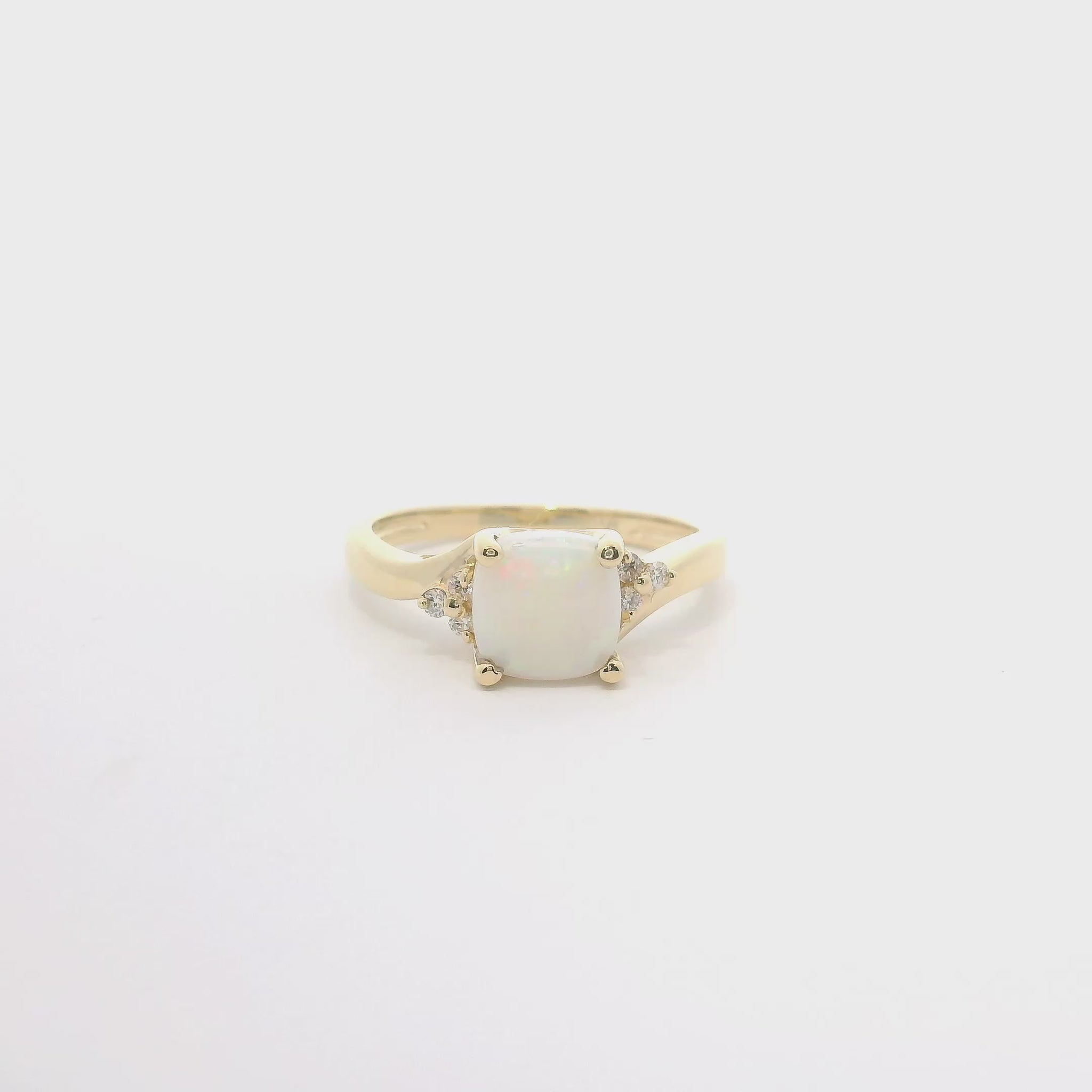 14KT YELLOW GOLD 1.28CT CUSHION CUT OPAL ACCENTED BY .08CTW OF SI1-SI2 H-I NATURAL DIAMONDS