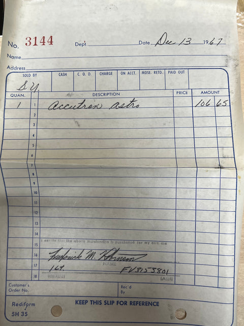 1966 Bulova Accutron Astronaut -N- M7 21213 Wht. SS/SP All Boxes/Tags/Reciepts