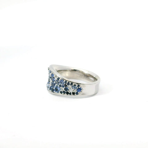 Expertly crafted using 2.17CTTW of natural sapphires and .23CTTW of natural diamonds, this custom-made 14K white gold ring features stunning pave-set sapphires and diamonds. With its elegant design and quality materials, this ring is the perfect choice for adding a touch of sophistication to any outfit. Elevate your style with this sparkling, one-of-a-kind piece.