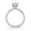 This enchanting solitaire round engagement ring features a 2 carat round diamond in a prong setting, atop a shank of more prong-set shimmering diamonds, coming to a total weight of 0.37 carats.
